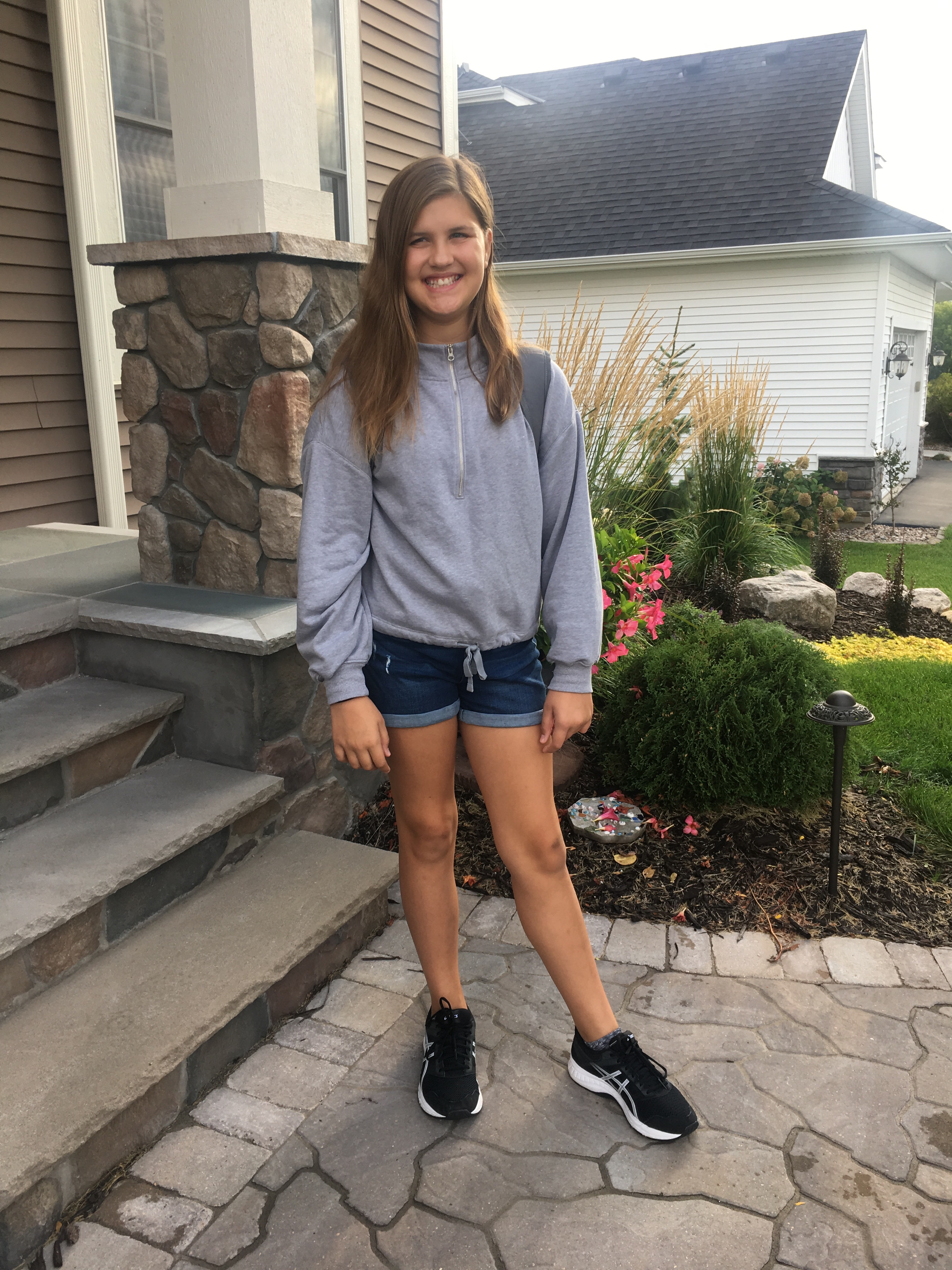 Däremot var denna söta fröken mycket mera samarbetsvillig och mamman fick en fin bild av henne då hon gick ut till skolbussen. Som denna morgon skulle ta henne mycket längre bort till den nya ( för henne) mellanskolan och åk 6.