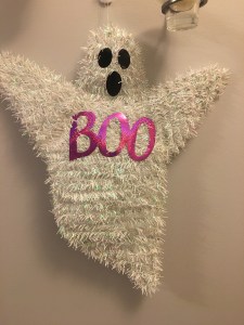 Vissa av grannarna pyntar massor. Det är alla möjliga skelett och lampor och stora upppblåsbara figurer på gårdarna. Eftersom jag inte är mycket för detta spektakel, blev det som sagt sparsamt…