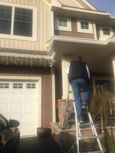 Ja, men absolut! Här i Amerikat går det undan och ligga på latsidan skall man  kan icke göra! Alltså städade Maken och jag bort de få pynt vi hade framtagna för Halloween  och tog  fram julbelysningen istället. Jodå, på riktigt. Eftermiddagen bjöd på värme och sol, hela åtta grader och inga kalla vindar heller, så vädret var alltså helt perfekt för att klättra på stegar och hänga julbelysning.