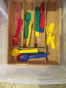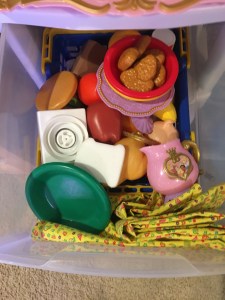 Förvaringslådor fyllda med leksaker som inte längre används….