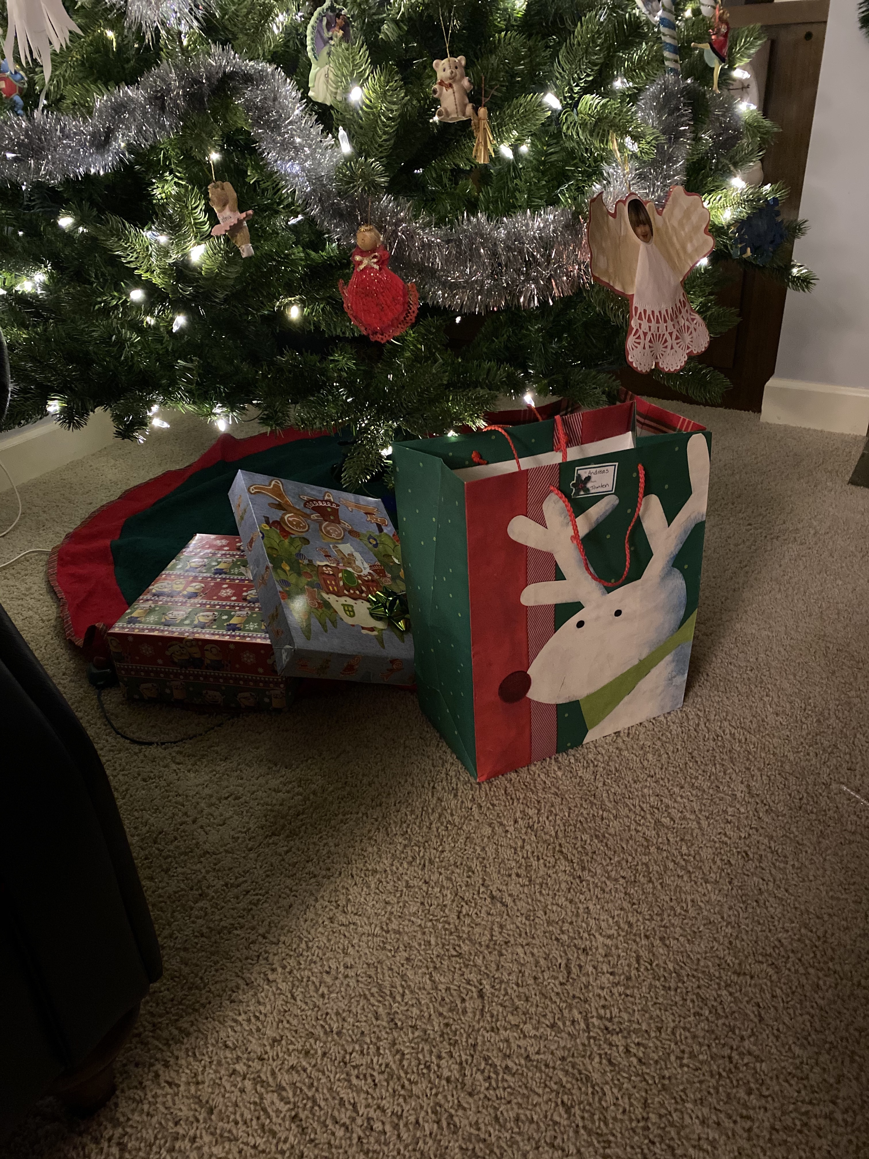 … är nu placerade under julgranen. Vi har inte riktigt bestämt oss ännu när vi skall ha julklappsutdelningen här hemma. Vi åker som sagt till varmare väder över julen och kommer inte att vara hemma när Tomten kommer.