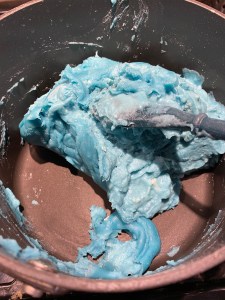 … åtminstone hur den görs av mig och mina arbetskamrater här på andra sidan Potten. Det är nämligen så att jag och mina sex arbetskamrater turas om att göra saltdeg/trolldeg för barnen att leka med på dagis. Vi delar upp skolåret och tar 1-2 månader på var. Detta är ett mycket förmånligare sätt att erbjuda denna nyttiga form av lek för barnen att än att köpa små burkar med köpt deg som sedan torkar ut hur fort som helst och måste kastas bort.