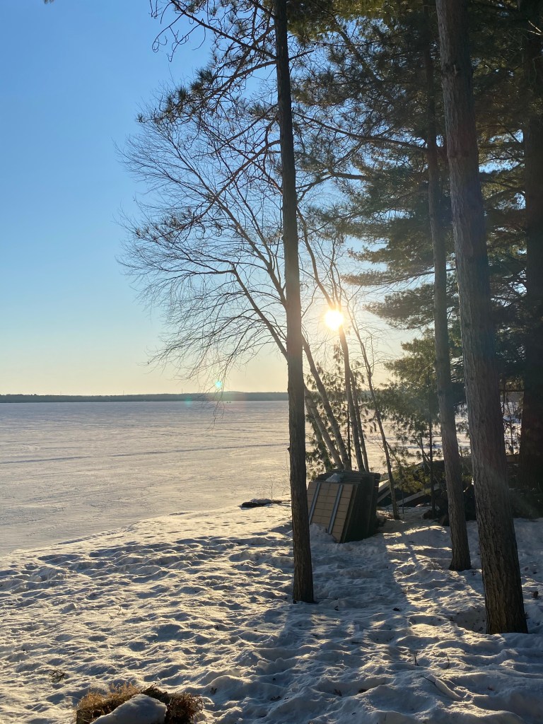 Nu är det morgon och vi är redan uppe. Jag tyckte Maken hade en lite väl galen idé då han föreslog att vi skulle köra 250 km på fredagskvällen, men nu ser jag ju att han nog hade rätt. Det är en kall (-18!) men vacker lördagsmorgon vi bjuds på här i norra Wisconsin.