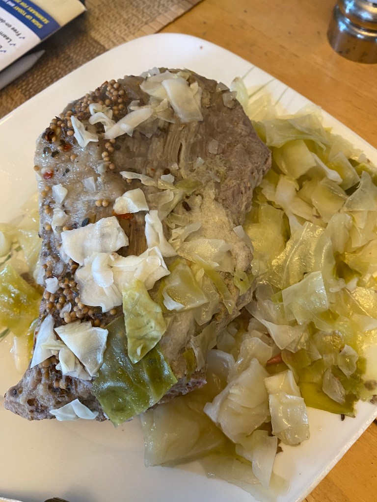 Igår då jag åkte till mataffären köpte jag den traditionella maten för denna dag, trots att vi är allt annat än irländska, men det blir så gott. Pepprat nötkött med kål och potatismos till. En irländsk-amerikansk rätt som jag lärt mig göra av Svärmor.