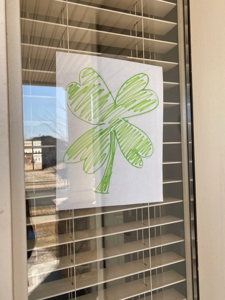 Sagt och gjort. Dottern, som är den konstnärliga i familjen, fick tag i papper och grön penna och ritade snabbt och lustigt ett klöver som hon sedan tejpade upp i fönstret.