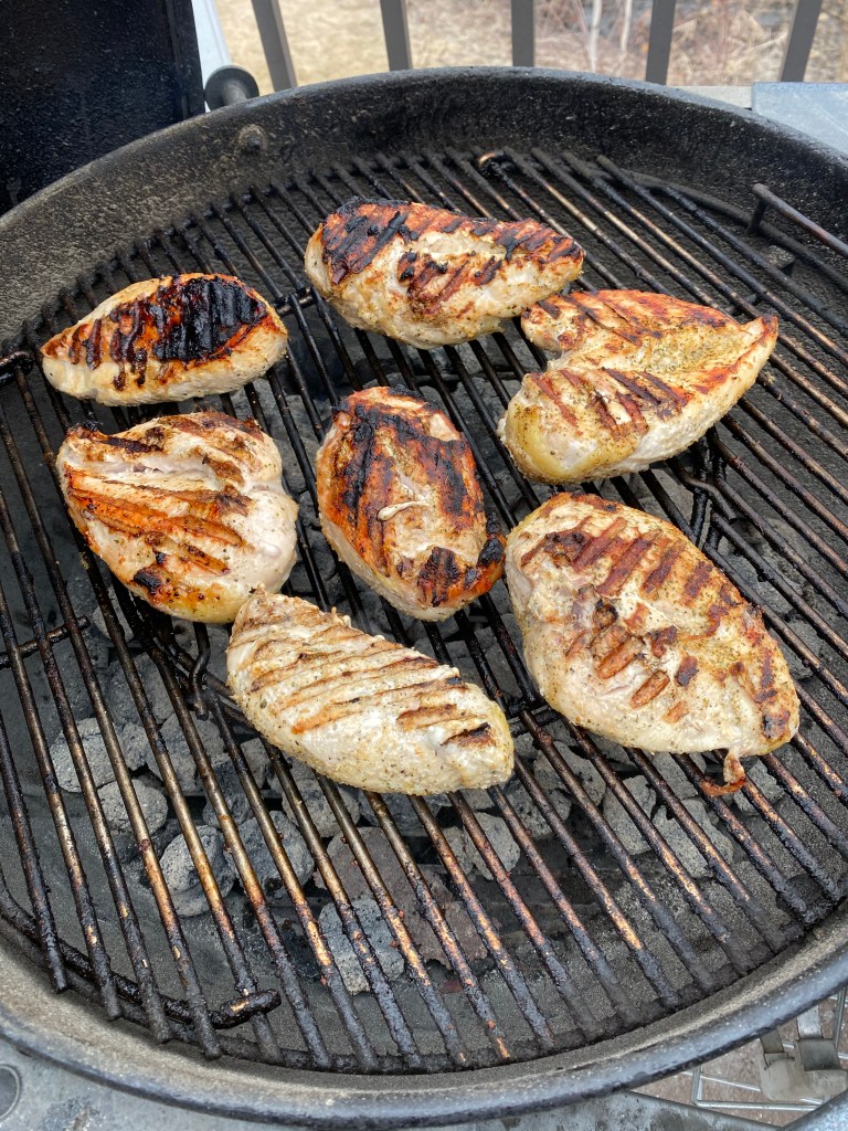 Ikväll grillade jag kycklingbröst, men de blev tyvärr inte alls så goda som de ser ut att vara på bilden. Eftersom det var mycket kyligare ute denna tisdagskväll än vad det hade varit igår, kallande kolen på grillen och det tog längre än vanligt för kycklingen att blir färdig, med den påföljden att den blev väldigt torr.