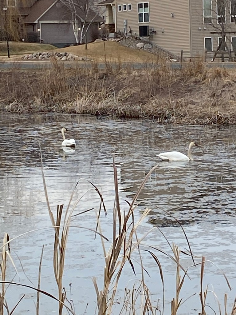 ikväll landade dessutom Herr och Fru Svan på dammen igen! Ett mycket säkert vårtecken. Att få en bra bild av dem var däremot inte så lätt eftersom de hela tiden lägger ner sina huvuden under vattnet för att söka mat. Det tog en stund, men till sist lyckades jag i alla fall. Visst är de vackra, men nog gör de skäl för sitt trumpetarnamn!