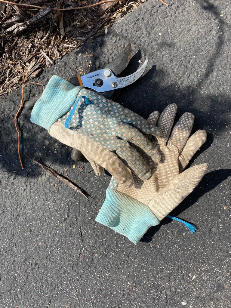 En lite stund skar jag av gamla, utdöda blommor från förra hösten och det kändes bra. Jag bad Dottern komma hjälpa mig, men hon var mitt uppe i studierna.