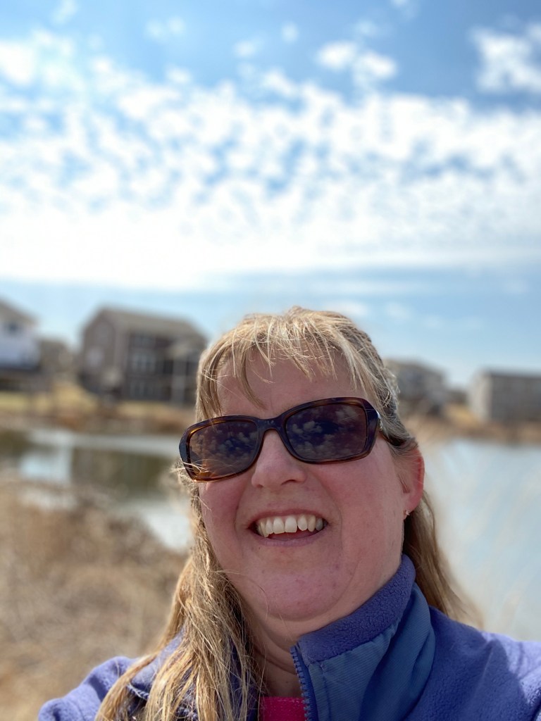 Verkligen ett tillkrystat leende på denna selfie som jag försökte ta med hunden Lilly på eftermiddagen då vi nästan var hemma igen efter en promenad på runt 3 km. Vinden blåste rejält kyligt och Lilly tyckte inte alls att hon ville posera med Matte. Alltså, blev det som det blev.