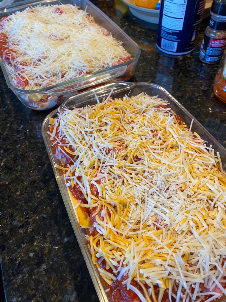 Väl hemkommen igen hjälpte de duktiga barnen mig med att packa upp maten och sedan satte jag igång med att göra en lasagne åt oss och en åt Svärföräldrarna. De bor rätt nära oss, så efter att den var klar täckte jag den med folie och körde hem den till dem. Enkelt för dem bara sedan att lägga i ungen och ngn timme senare har de middagen färdig. Gladare äldre par fick man leta efter!