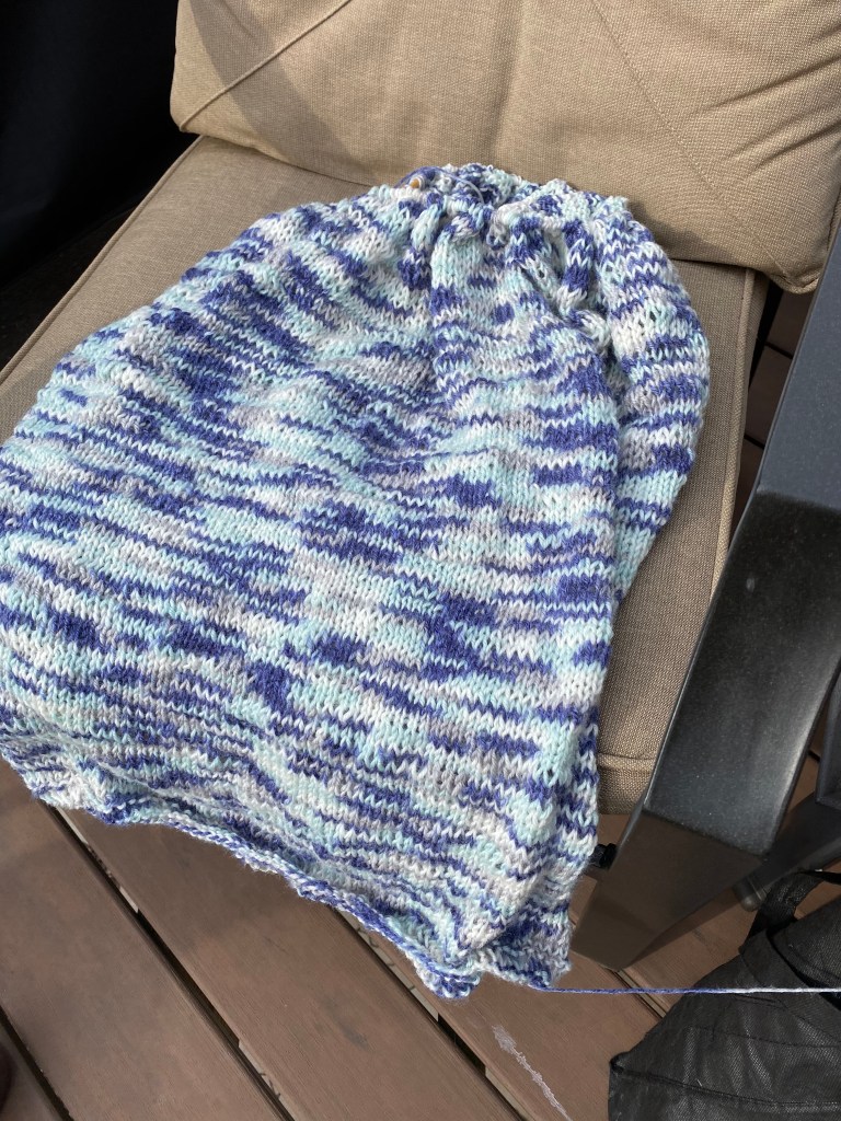 Eftersom jag hade sol kvar, men ingen läsning, gick jag in och hämtade stickningen istället. En stund till fick jag sitta och njuta i solen innan diset och sedan molnen kom insvepande för att täcka över min fina, varma sol.