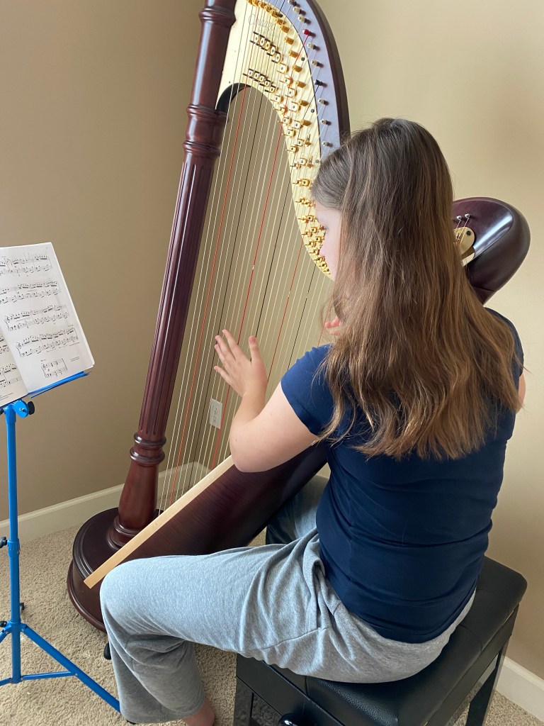 Efter Zumba sprang jag direkt ner till musikrummet där Lillasyster redan hade satt sig vid sin harpa och värmde upp. Det var dags för lektion i harpa Eftersom jag var trött och svettig efter mitt träningspass, gömde jag mig bakom skärmen och gjorde anteckningar, medan Lillasyster och henens lärare diskuterade och spelade. Halvtimmen gick fort och det var som alltid roligt att sitta med och lyssna.