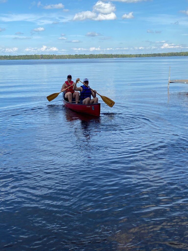 Medan jag lade igång med matlagningen till kvällen, blev det premiär för flickorna att ta ut kanoten för lite paddlande. De var ute en lång stund och hade sökt sig in i den närliggande ån/kanalen. De de njöt i värmen och solen och berättade efter hemkomst att det blev nästan för varmt i lä från vinden.