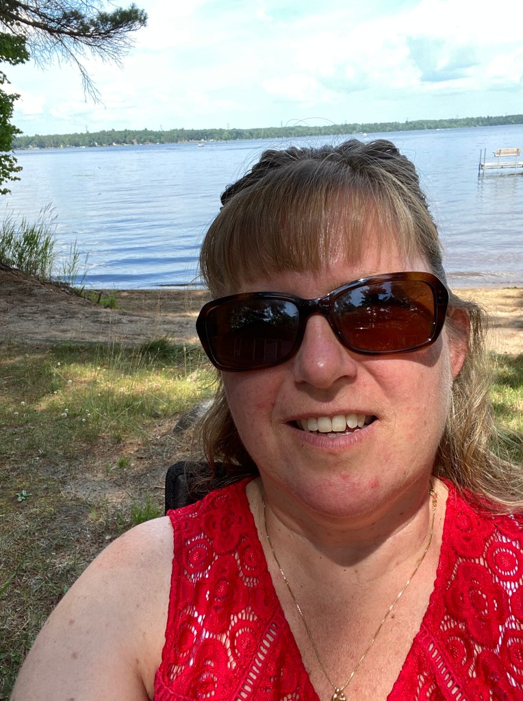 En selfie tagen framför sjön vid sommarstugan igår den 4.7. Värmen låg på runt trettio grader….