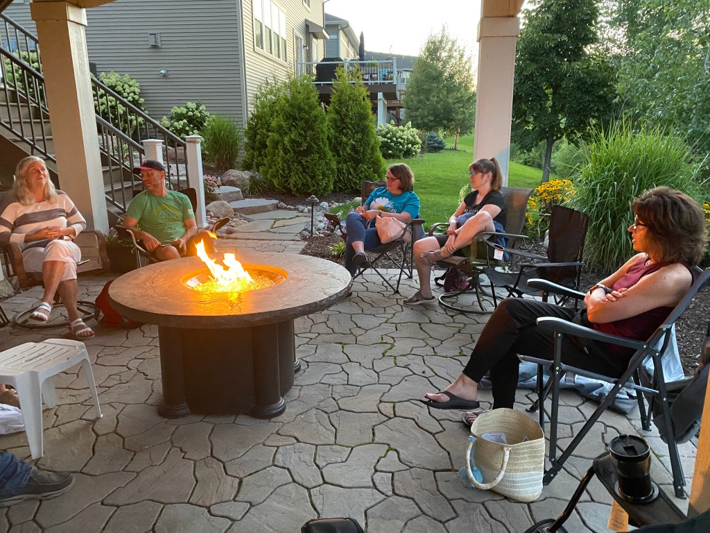 Vi bestämde nämligen att fortsätta träffas utomhus så länge det bara går. Varma kläder, spisar och en medhavd, varm dryck blir nog bra här i höst Hellre det än att sitta inne i kyrkan med munskydd som täcker våra ansikten!