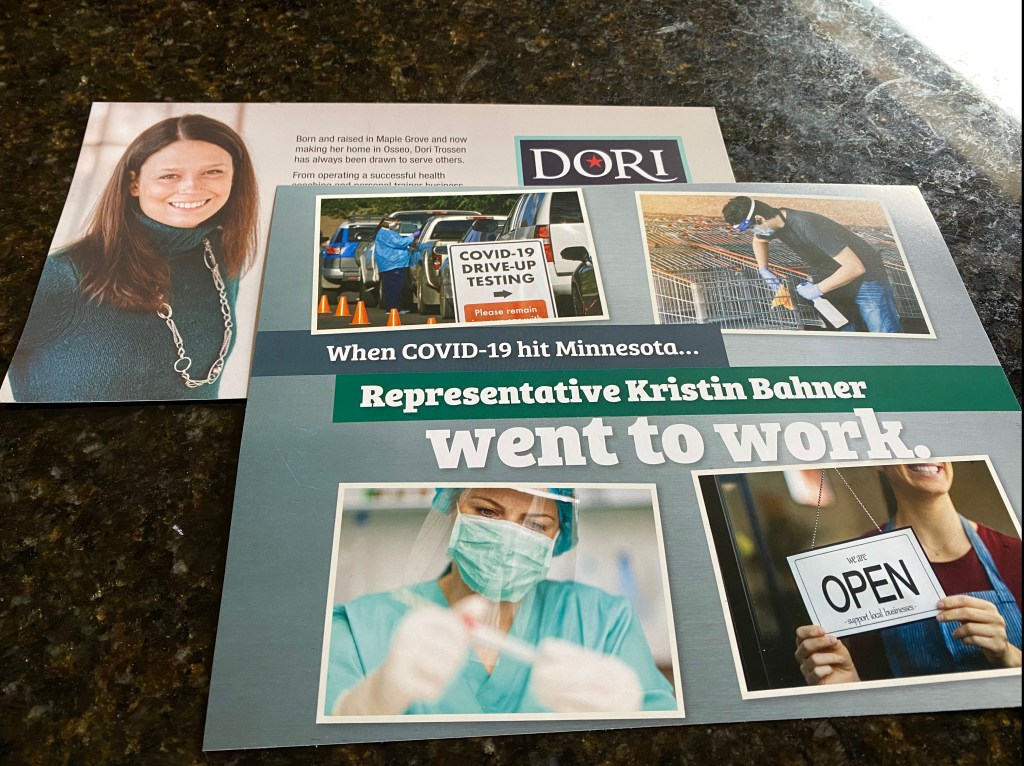 Valreklamen dimper ner titt som tätt nu. Så gott som varje dag kommer det mera reklam i brevlådan. De lokala kandidaterna håller låg profil pga pandemin, men det är från dem vi hör genom posten. Båda presidentkandidaterna kommer till Minnesota imorgon, fredag. Till olika ställen förstås och Tim Walz, Minnesotas Guvernör har vädjat till dem båda att följa restriktionerna angående pandemin.