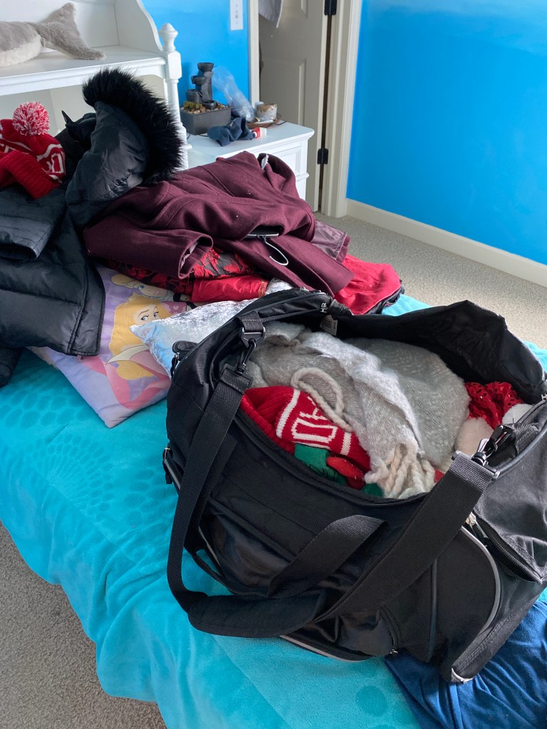 Det fanns extra jackor som hon ville ha med, mössor, en del smycken och lite annat smått och gott som jag nu packade ihop åt henne. Däremot hade jag svårt att hitta vantar åt henne. Hade ett par nyinköpta från förra vintern som Lillasyster skulle ha använt på lägerskolan som aldrig blev av pga pandemin, och dem satte jag med åt henne. Det var hon väldigt nöjd över plus att hon berättade att hon hade ett par vantar redan.