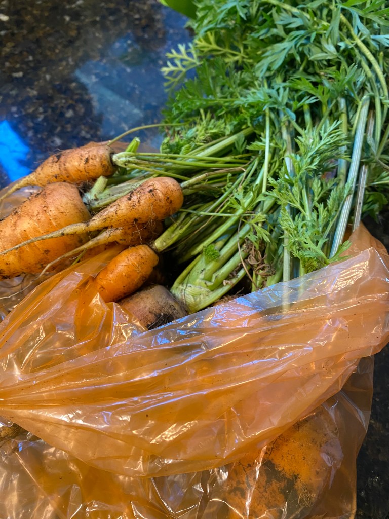 Anledningen till att jag beslöt mig för att gå ut i första hand var att rädda morötterna som Dottern också hade planterat. Det skall bli riktigt kyligt senare i veckan. Så pass kyligt att det nog blir flera minusgrader under nätterna och endast runt fem grader på dagarna. Bäst att skörda!