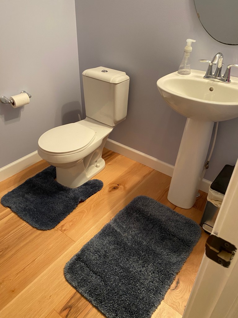 Snyggt är det även på wc, har ni parkett 😊Men söta lilla Lilly en sån suprise att komma hem efter en vecka och golvet är utbytt , skönt ser det ut att sova på kudden i alla fall . Snart ny vecka igen.Trevlig vecka till er