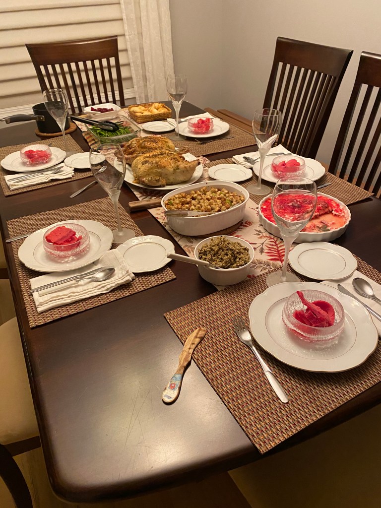Fyra timmar i köket denna eftermiddag, trots alla förberedelser tidigare i veckan. Inte lite jobb med att förbereda maten till Tacksägelsedagen, men nu har vi ätit, det blev gott och alla är nöjda och belåtna. Pumpapajen har vi ännu kvar, men den tar vi om en stund. Just nu orkar inge mera mat….