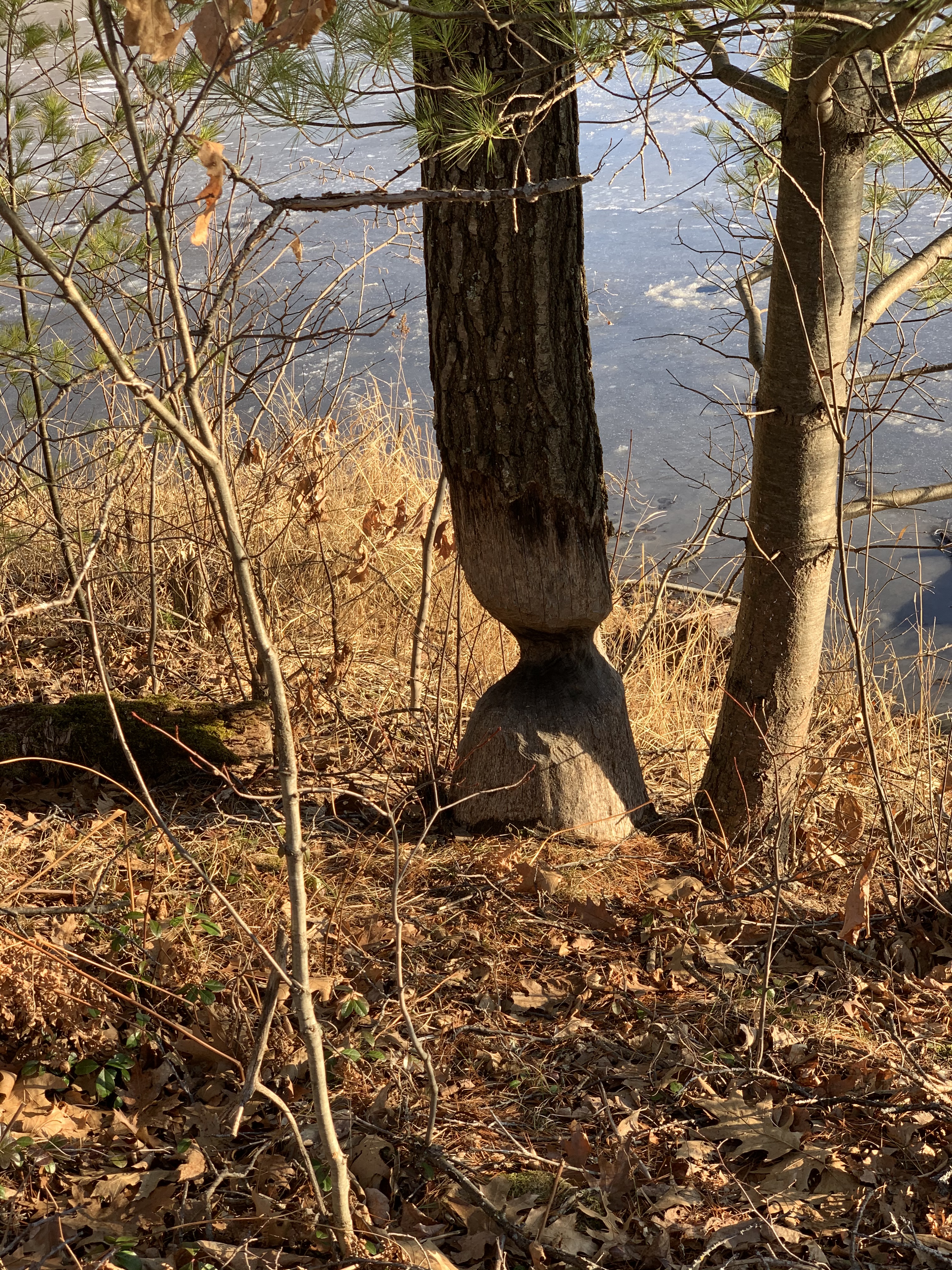 Här hade Herr Bäver varit framme för en tid sedan. Varför han inte fällt trädet helt är ju en gåta, men lite kul var det ju att se. Några bäverdammar såg vi inte till.