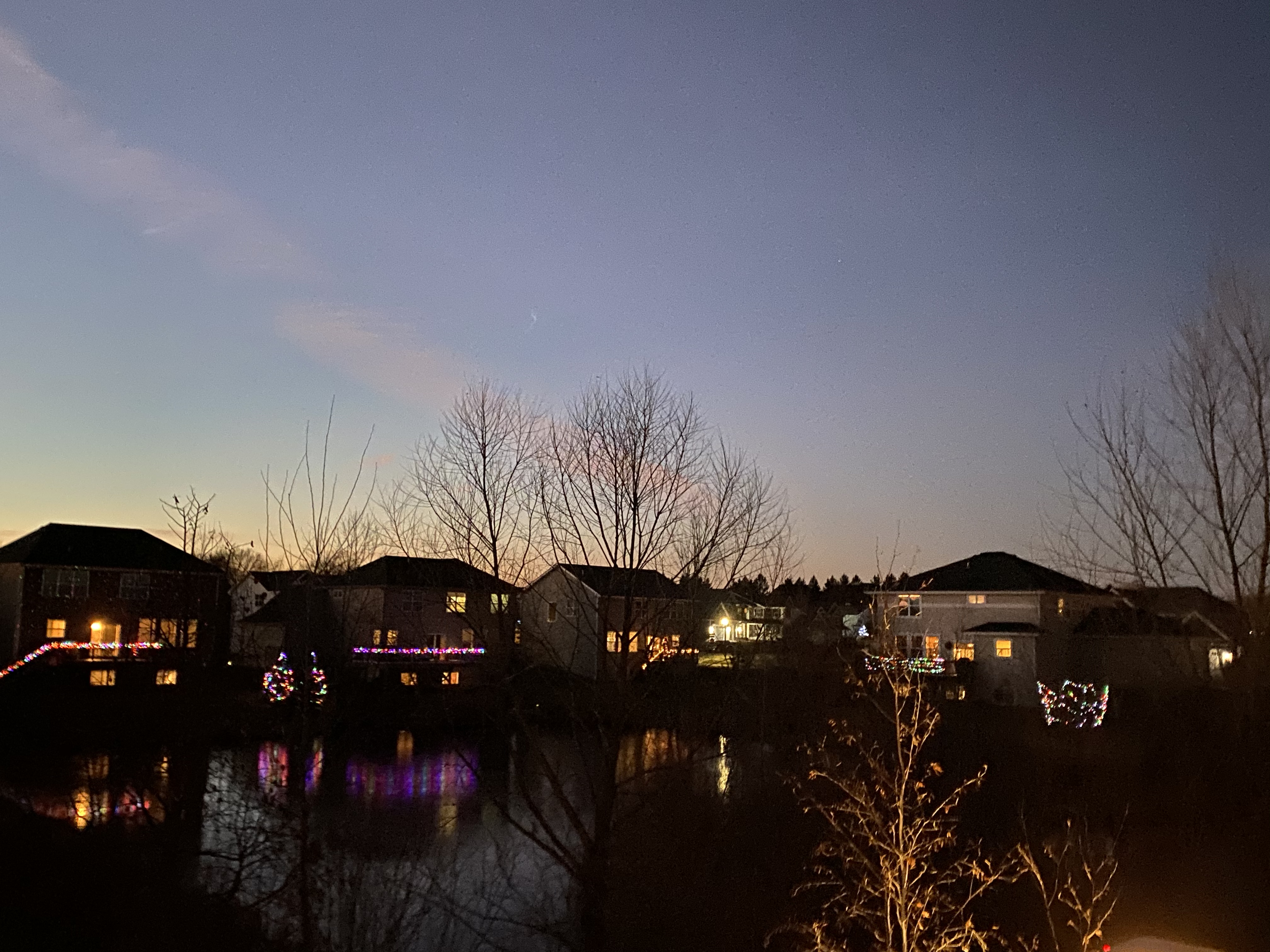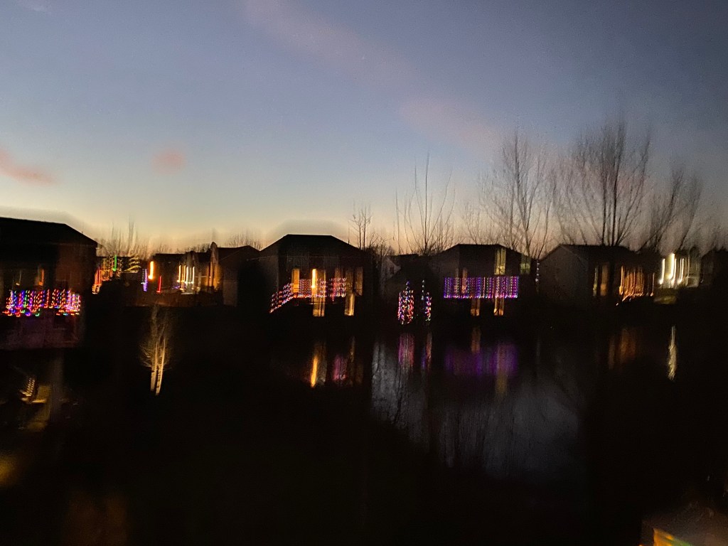 Precis som oss har de flesta grannar, eller alla fall de som firar julen, hängt upp sin julbelysning och det såg nästan lite magiskt ut när jag gick ut till den där väntande grillen.