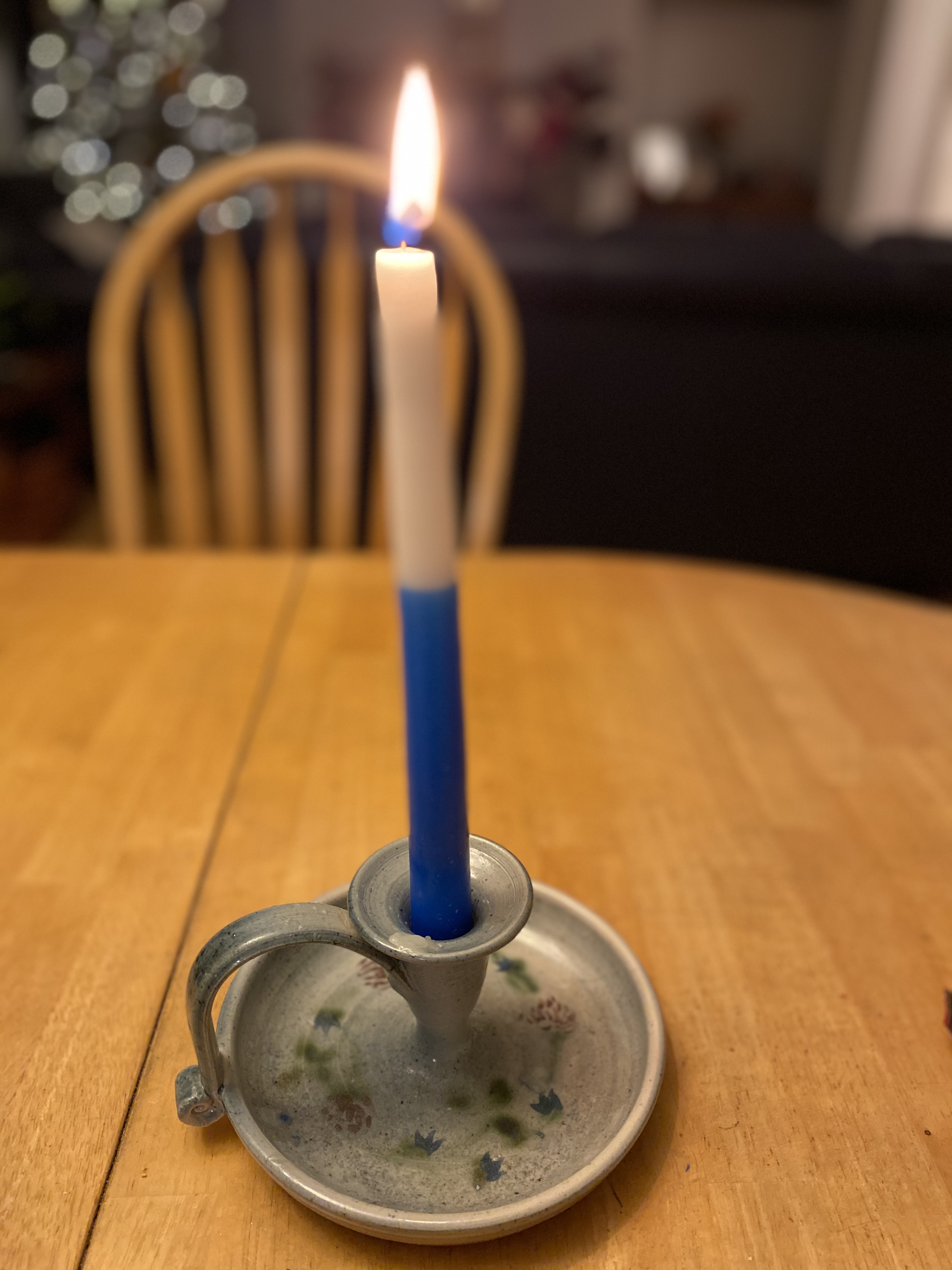 Jag har förstått att ljusen skall egentligen vara två till antalet och stå i fönstret, men är man långt borsta hemifrån och inte kan få tag på flera ljus, då får det helt enkelt duga med denna variant. Fosterlandet koms ihåg ändå.