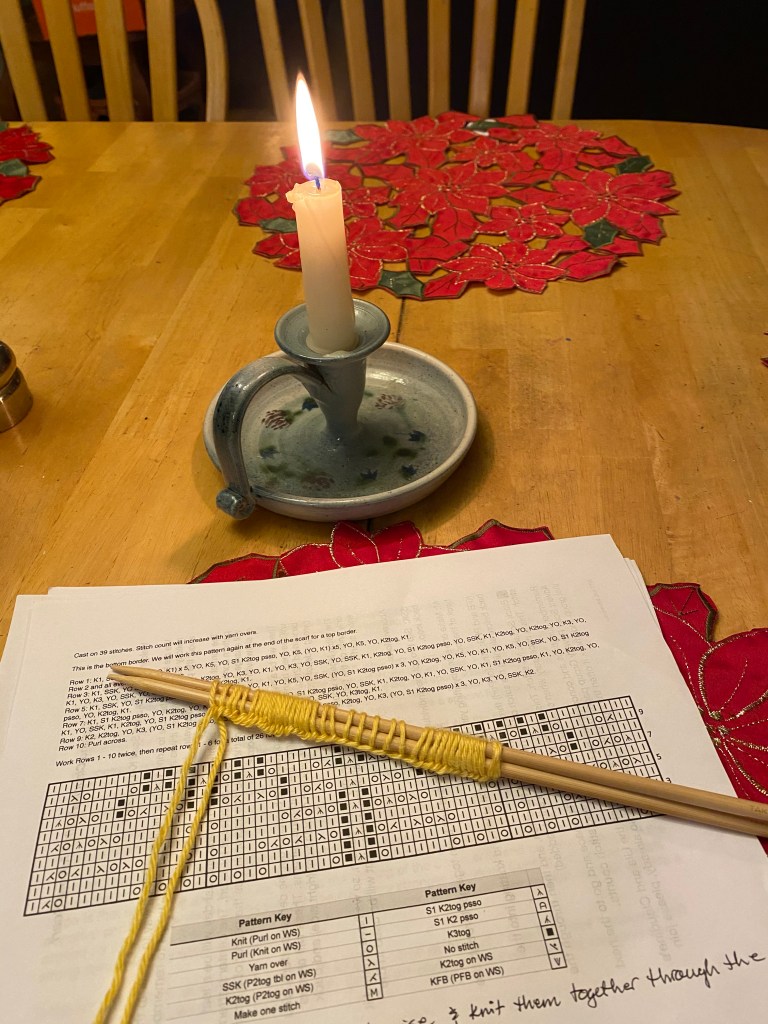 Då advent började utmanades vi alla av en av kompisarna att sticka en advents scarf. Detta är en scarf som stickas på lite varje dag, precis som en adventskalender. Hon skickar dagens mönster via mejl varje dag och vi är då naturligtvis idag redan på den åttonde delen som skall stickas.