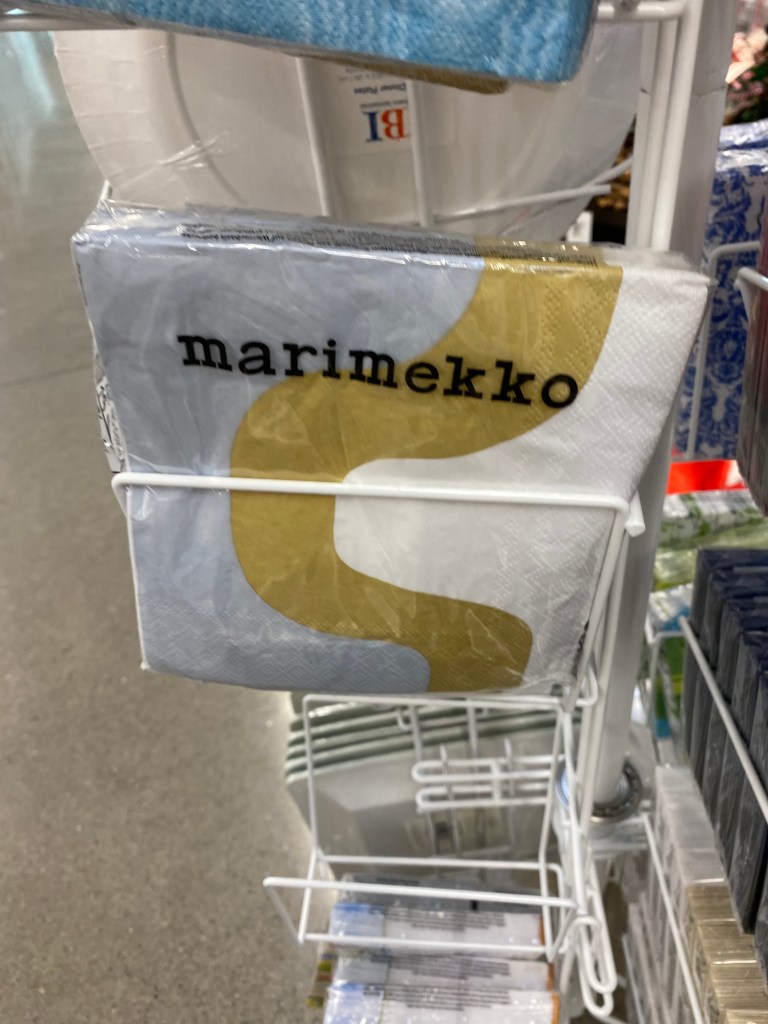 Eller hur? OK, jag vet att där hemma är det ju inte ngt märkvärdigt med att hitta dessa servetter i en helt vanlig affär, men jag föll nästan baklänges då jag hittade dessa i matbutiken idag! Helt otroligt! Som bekant jobbar Sonen vid samma butik därifrån jag ser till att fylla på skafferi och kylskåp, och han var inte så lite imponerad han heller. ( Jodå, ALLA våra barn vet vad Marimekko är för ett märke!)