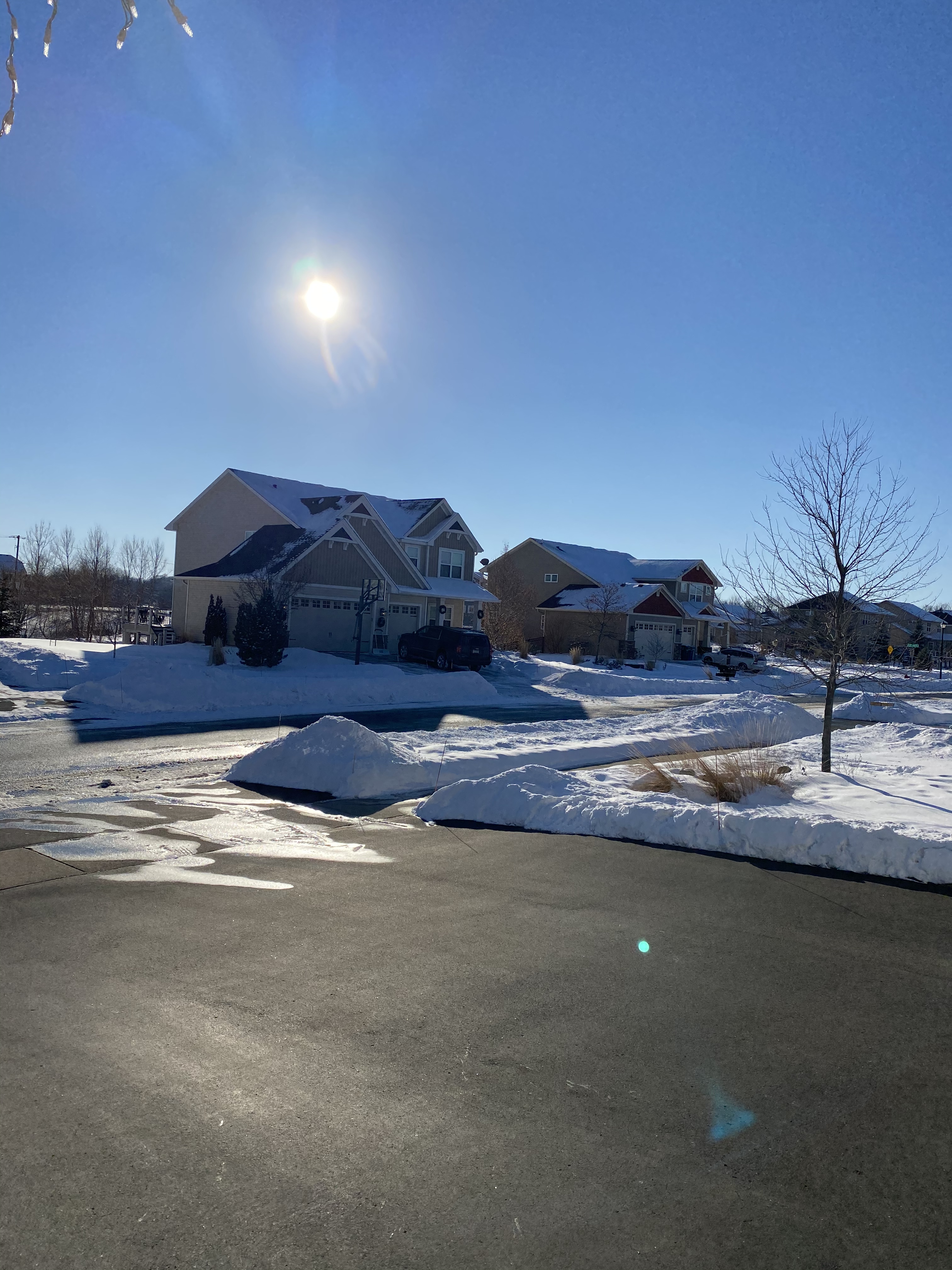 Dryga tre timmar efter att jag hade skottat klart såg uppfarten ut på detta sätt. Solens strålar hade jobbat hårt och tillsammans med den mörka asfalten hade sgs all snö och is smultit bort. Visserligen är det bara januari, men vi är helt klart på väg mot våren!