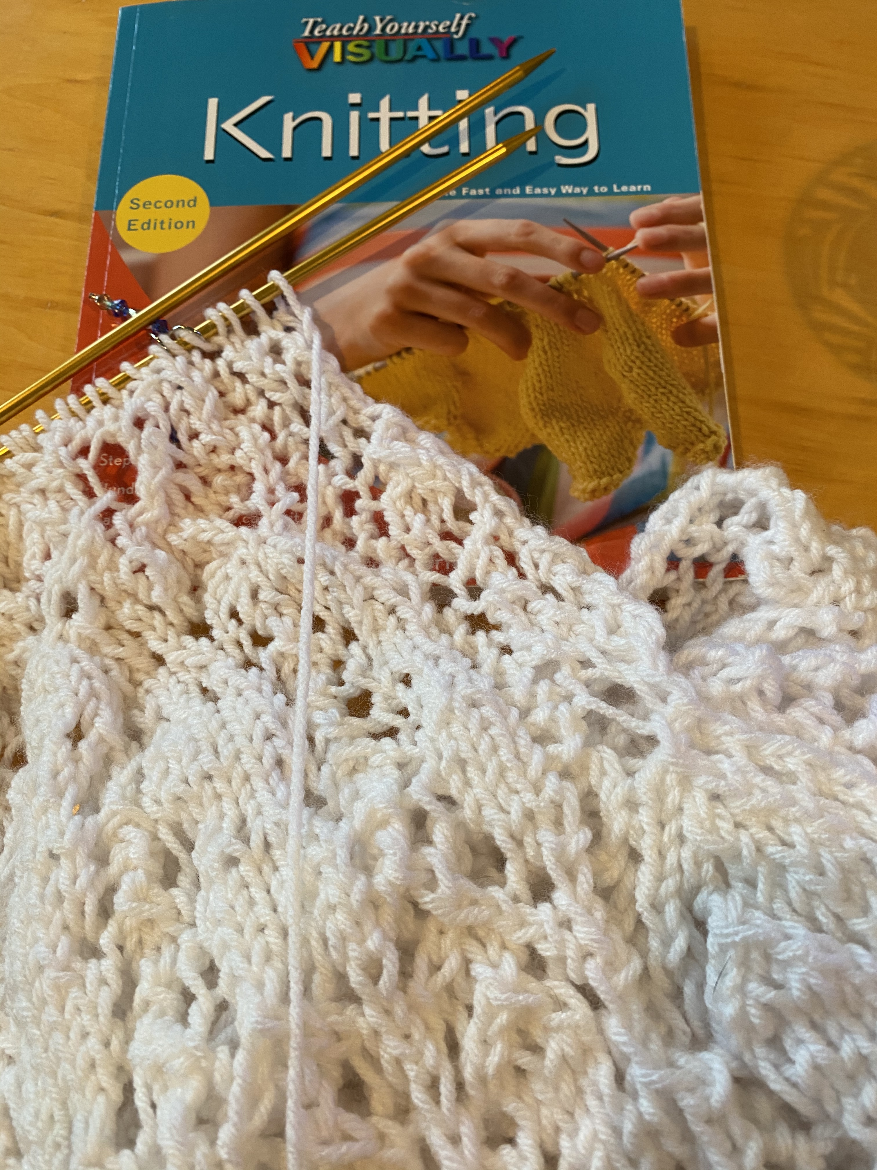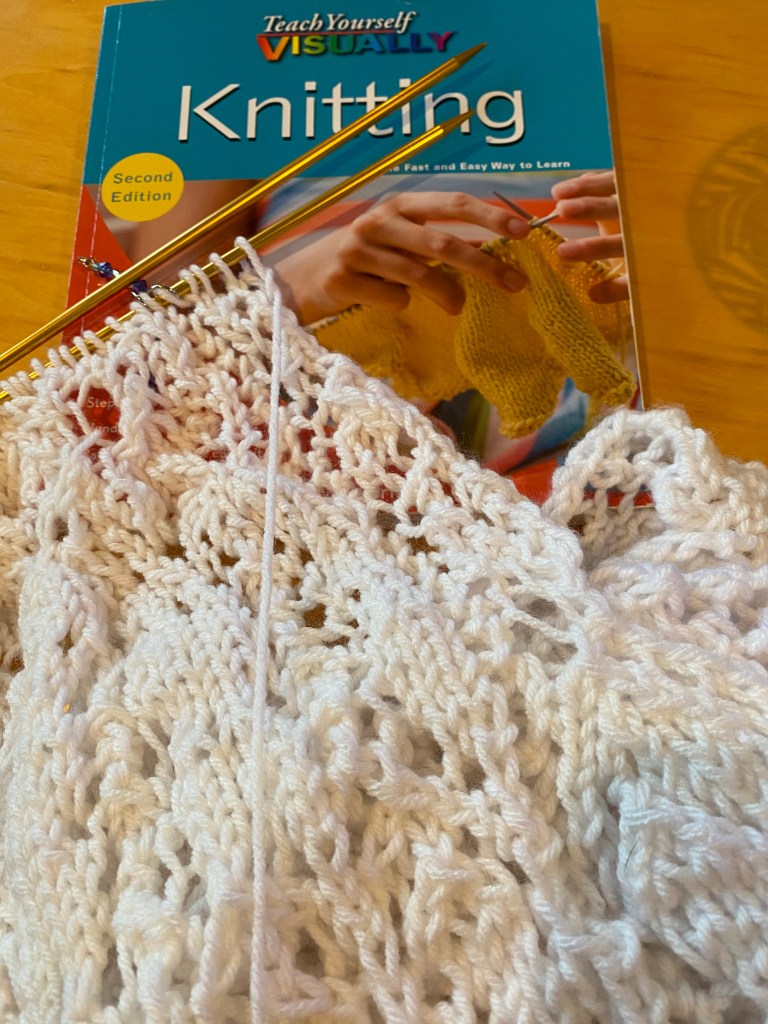 Det visade sig också att båda sätten som används att sticka här finns medtagna i boken. Amerikaner stickar i regel på ett rätt annorlunda sätt än oss européer. Deras sätt kallas den engelska metoden eller ‘the throw method’. Det intressanta med denna metod är att man kastar eller egentligen virar garnet runt den vänstra stickan. Ändå ger detta samma resultat som den europeiska metoden eller the continental method . Det bara ser väldigt bakvänt ut då man först ser på!