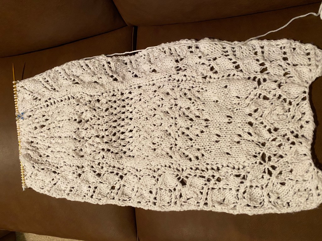 Jag lärde mig mycket genom att sticka den första, så ingen bortkastad tid där. Denna blir dock däremot den som jag kommer att drapera mig i!