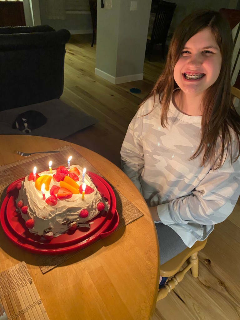 Efter kvällens middag blev det tårta med presenter vilket är brukligt för denna familj. Inga stora utsvävningar, men jag tror att en viss nybakad 13 åring var glad och nöjd ändå.