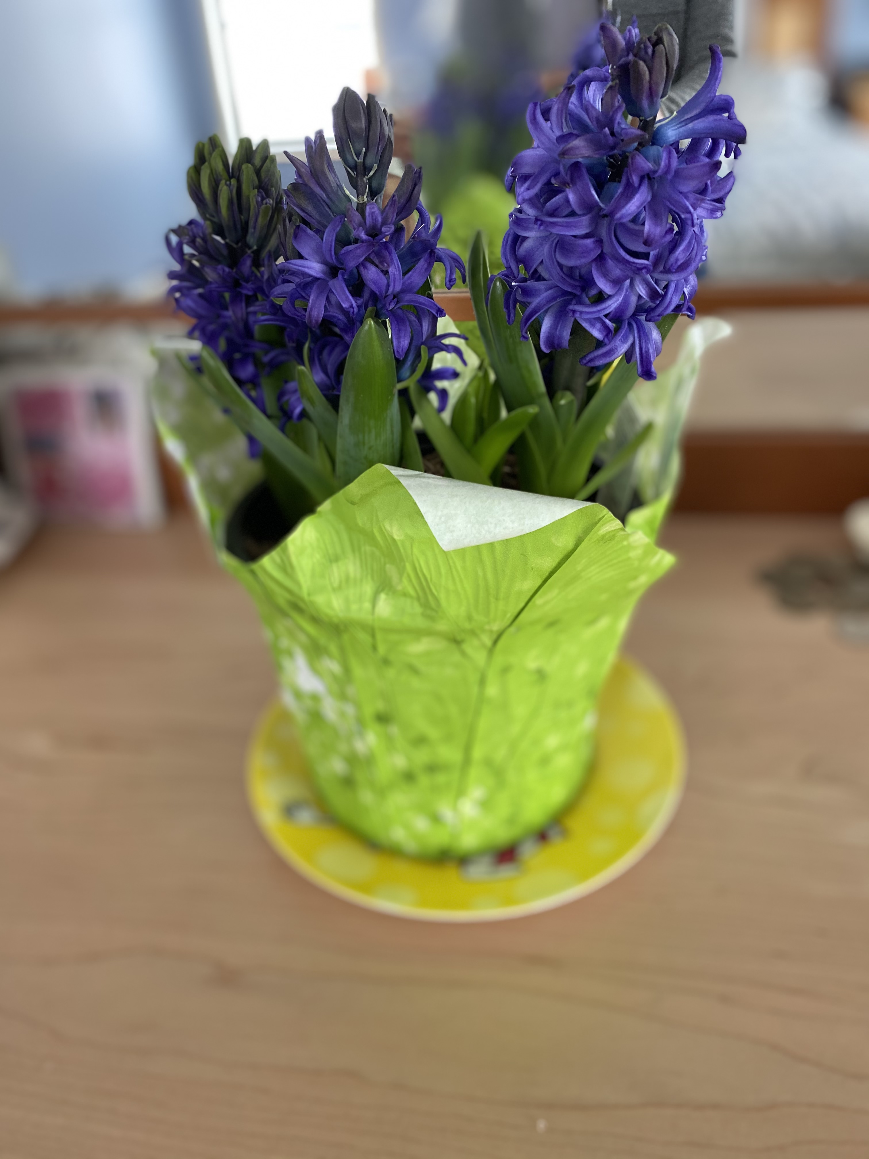 Min nya hyacint placerade jag i sovrummet där den sprider sin härliga, vårliga doft!