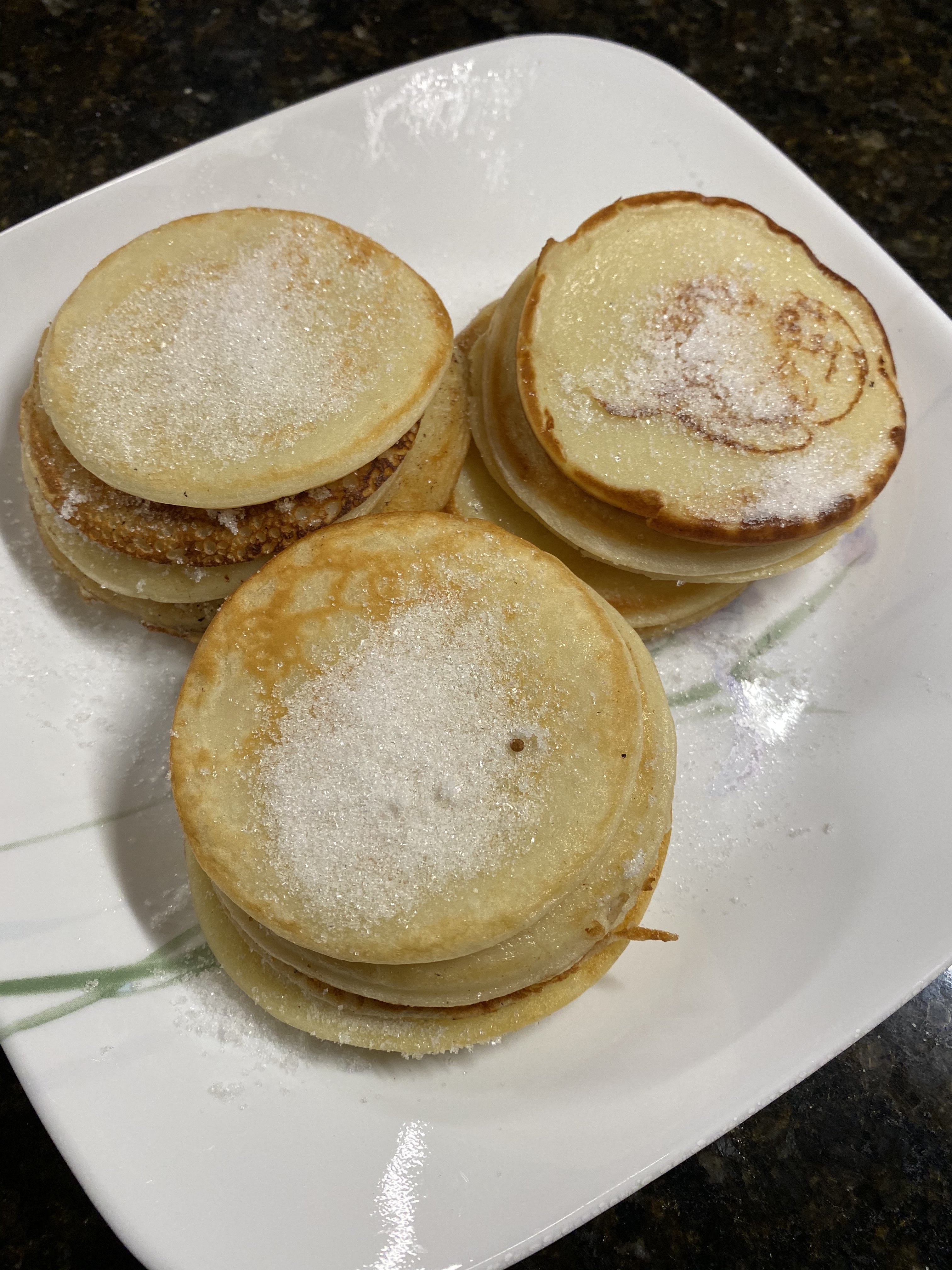 Lillasyster har som uppgift att koka hemma eftersom det inte blir ngt kockande i skolan till följd av det där lilla viruset ni vet…. Det är sgs fritt fram för elverna att välja vad de vill koka. Endast två recept behöver tillredas. Lillasyster tog det första receptet ikväll och det blev alltså hederliga, finländska plättar. Hon gjorde allting själv. Blandande smet efter att hon tagit fram ingredienser, stekte medan mamman höll ett öga på processen och till sist åt vi dem tillsammans. Lillasyster ville inte ha ngt annat är strösocker på dem, och de är ju faktisk väldigt goda på det viset, så på det sättet åt vi dem! Mums så gott det blev!