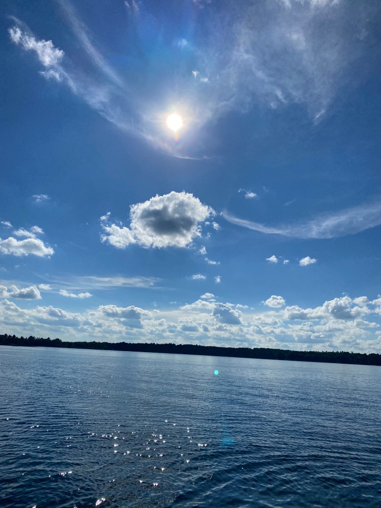 Medan pizzan gräddade i ugnen klarnade det ute och vi bjöds på en fantastiskt vacker eftermiddag. Solskyddet kom fram, simdräkter och simbyxor likaså och både båt och vattenskoter tankades. Och jag förberedde mig alltså för en eftermiddag baklänges i båten.