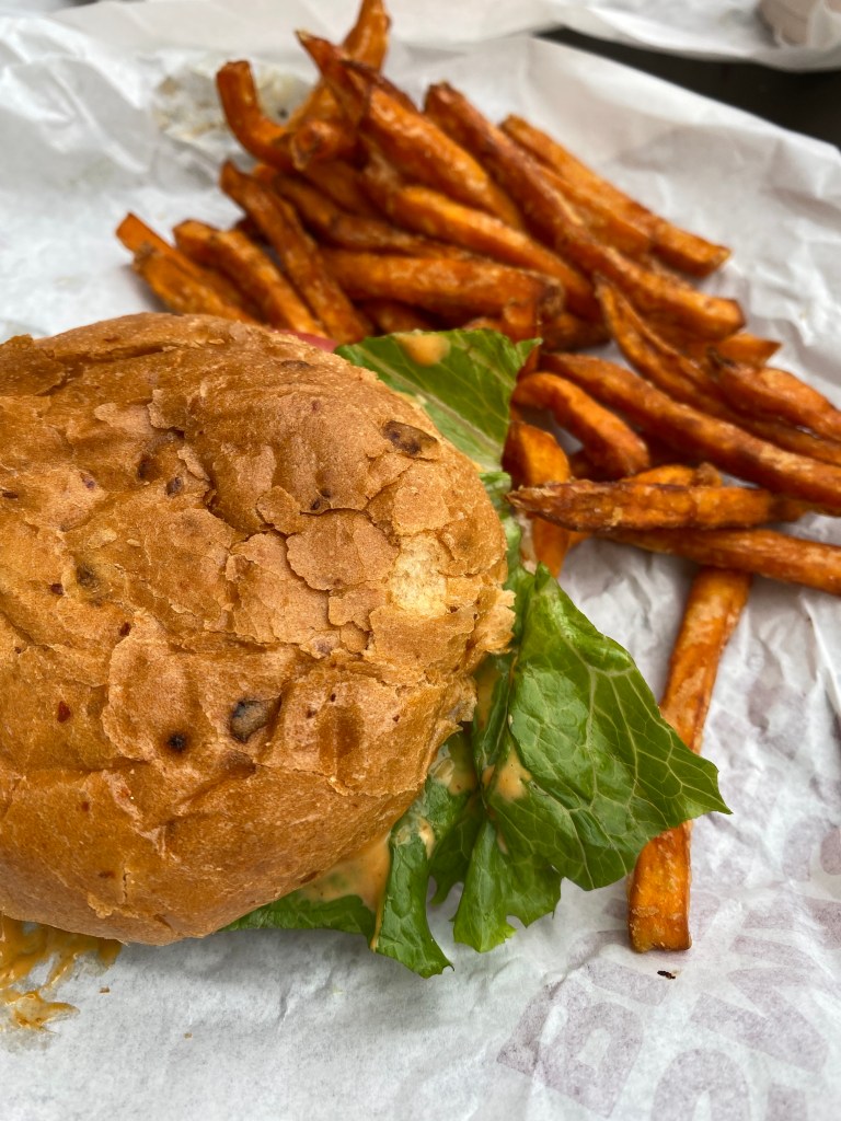 Såg ut som ett mycket trevligt loppis så jag förstår att du väljer det. Sötpotatispommes är alltid mitt val också när vi äter hamburgare ute. Mums.