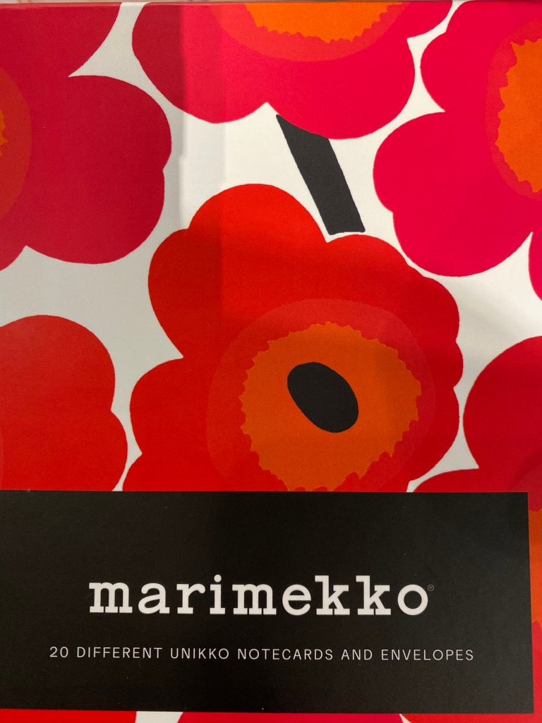 Javisst är Marimekkos mönster fina? Och sällan jag råkar på dem här hos oss förstås. Och visst är det bra med återanvändning och med intäkter som går till de som behöver lite extra hjälpa här i världen!