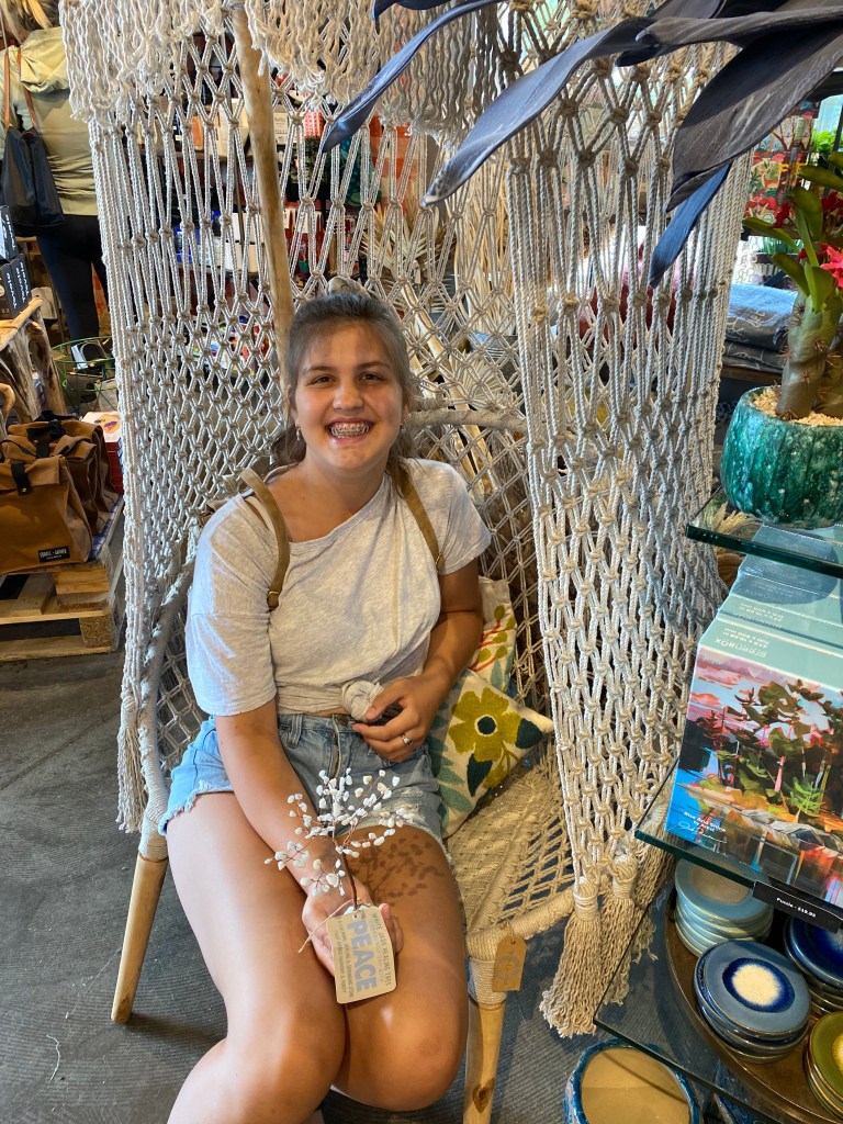 Efter loppisbesöket åkte vi vidare till en fantastiskt mysig gåvoaffär i en annan förort och där spenderade vi dryga timmen. Det fanns så mycket kul att se på även om priserna kanske inte var så kul….. Lillasyster hittade stolen ovan och skulle så gärna ha tagit hem den. Eftersom affären ville ha nästan USD300 för den, blev den kvar. Mysig är den verkligen……