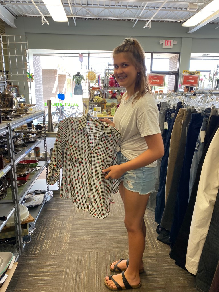 Eftersom Lillasyster ville shoppa på loppis, gick vi in den här gången. Jag hittade inga kläder åt mig själv, men väl två böcker. Dock var kön rätt lång och ingen av oss ville stå i den för att betala, så jag lade böckerna tillbaka denna gång.