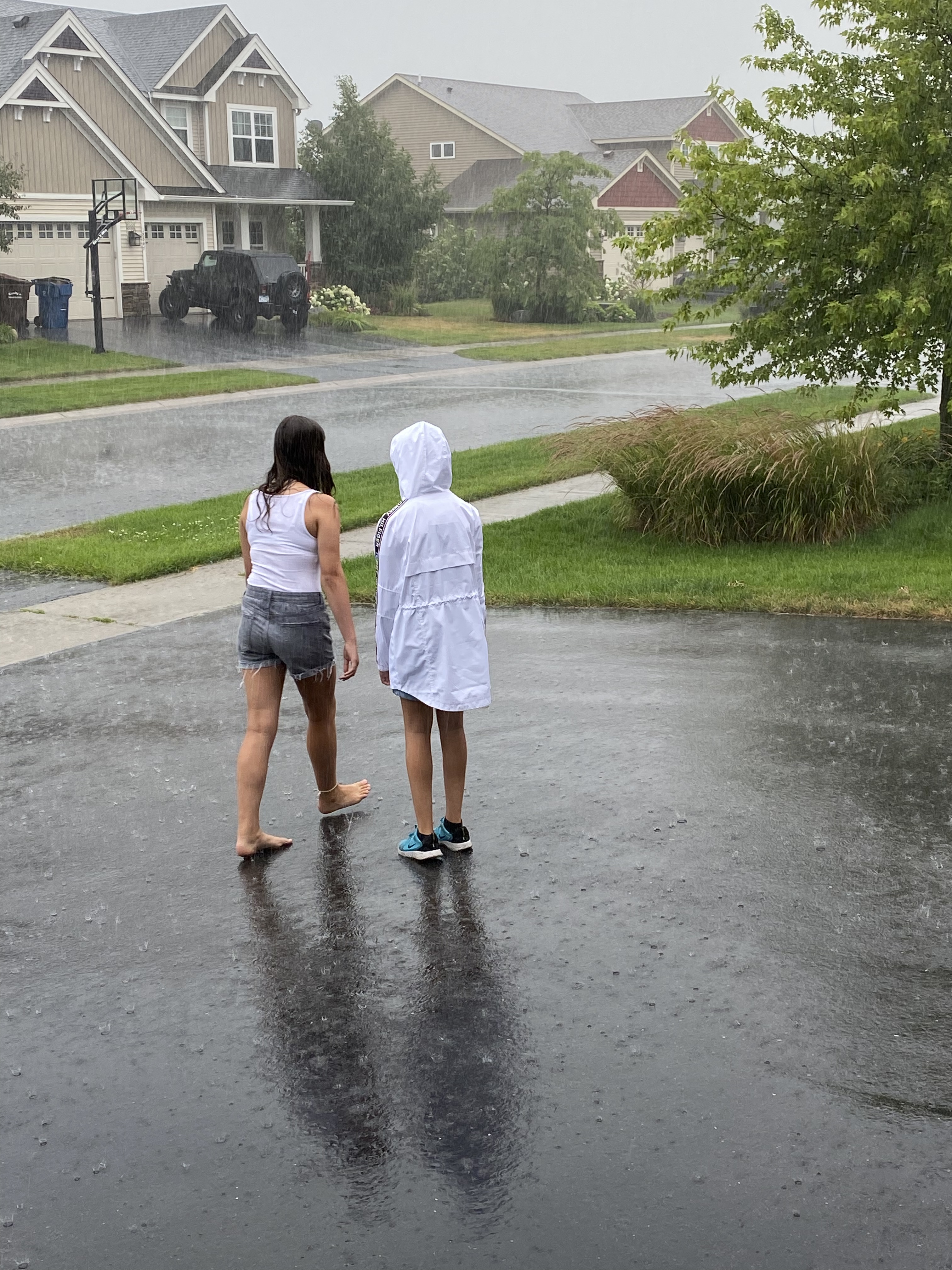 Lillasyster med kompis på besök gick rakt ut i vätan och sprang, dansade och hoppade. Det kändes så oerhört uppfriskande tyckte de och det var ju bara att hålla med om den saken.