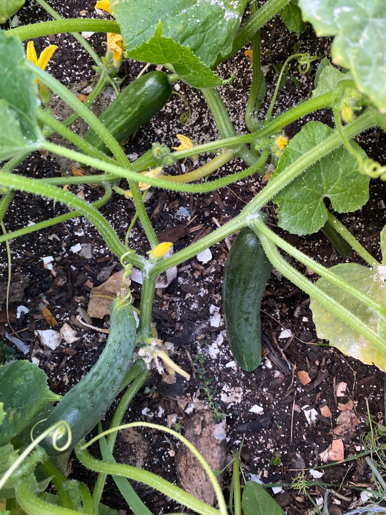 Jag har däremot ett helt vanligt trädgårdsland. Jag har odlat gurka en gång förut, men lät dem växa sig för stora. Då blir de lätt beska. Skall försöka skörda snabbare den här gången. Förhoppningsvis är de godare då….