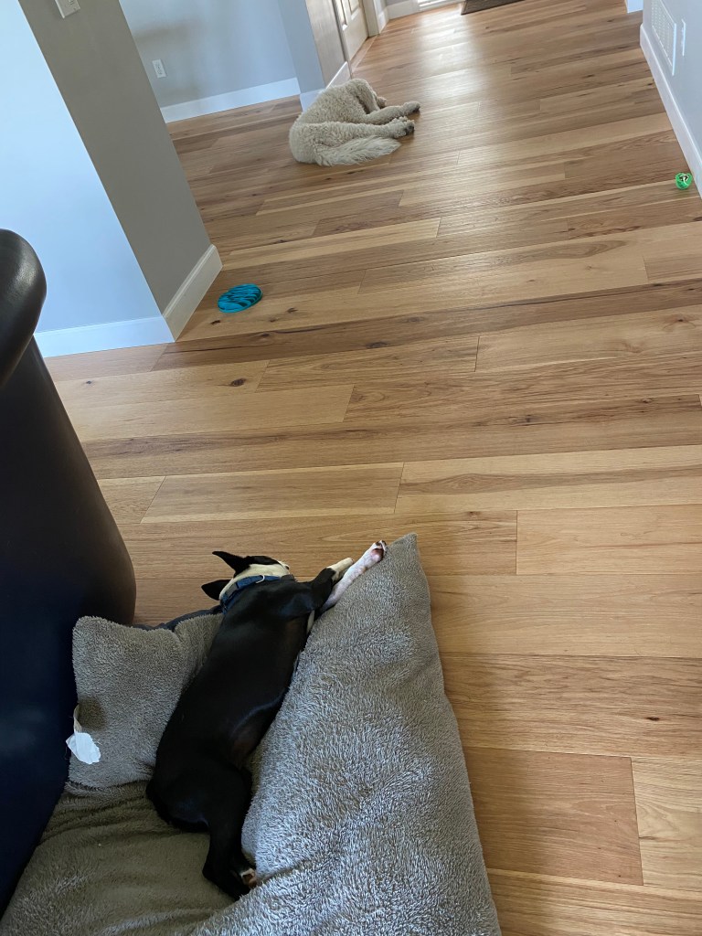 Hundarna tar det hela med ro. Ligger och vilar mycket. Gärna på det svalare golvet och vattenskålen är ofta tom. Behöver konstant fyllas på. Promenader blir det alls inga av. Kanske ngn enstaka efter solnedgången kring 20.15, men helst intar de läget ovan.