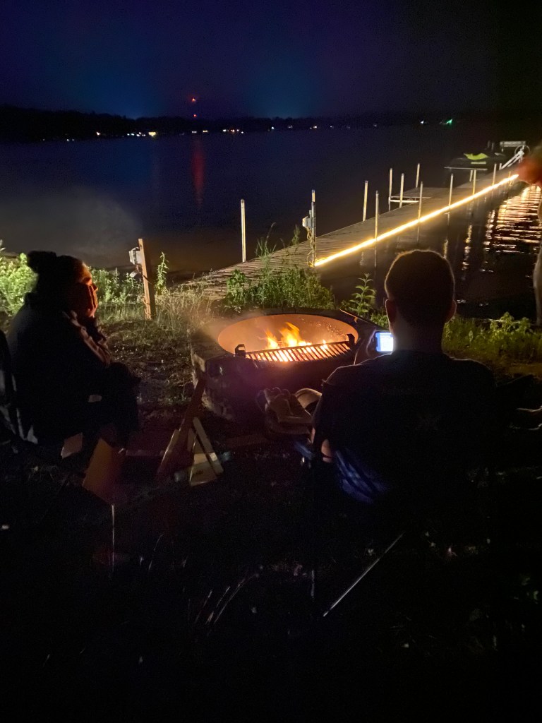 Igår kväll gjorde pojkarna upp en brasa. Det regnade rejält tidigare på kvällen, och var fortfarande rätt vått, så det kändes helt ok att göra upp en dylik. Vi satt länge och diskuterade bland annat ungdomarnas framtidsplaner. GrannKompisen flyttar hela vägen till Florida i höst där universitetsstudier kallar. Ingen kort sträcka hon flyttar precis, men det blir säkert bra. Sonen har ett år till i gymnasiet, men nästa sommar är det han som kommer att veta med säkerhet vart det bär av. Grannkompisen vill studera till marinbiolog och Sonen till yrkespilot. Det skojades om att han kan så småningom börja flyga henne från Florida i söder hem till Minnesota här i norr.