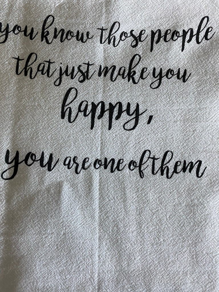 Tack! Ingen gåva behövdes, men eftersom jag är praktiskt lagd av mig, blev jag xtra glad över en kökshandduk med fint budskap. 😀