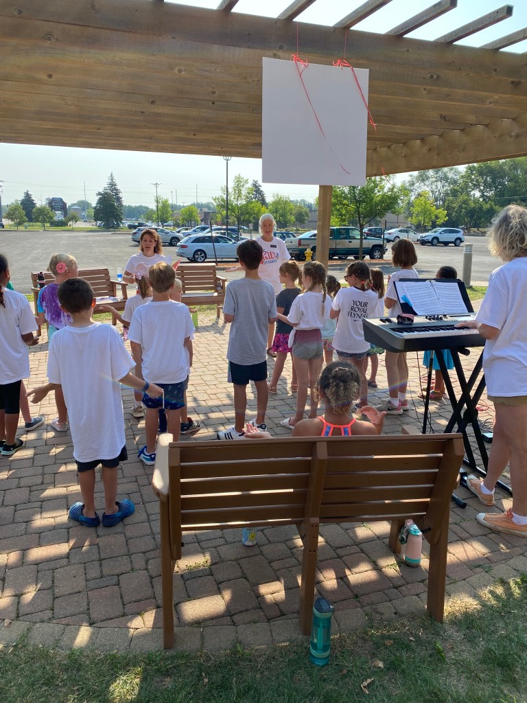 Efter att den korta filmen visats, gick vi tillbaka ut för att lyssna på vad barnen jobbat på under lägret. Barnens framförde de fyra sångerna de jobbat på de senaste tre dagarna mycket duktigt! Helt utantill med rörelser till. Teckenspråk och lite annan koreografi.