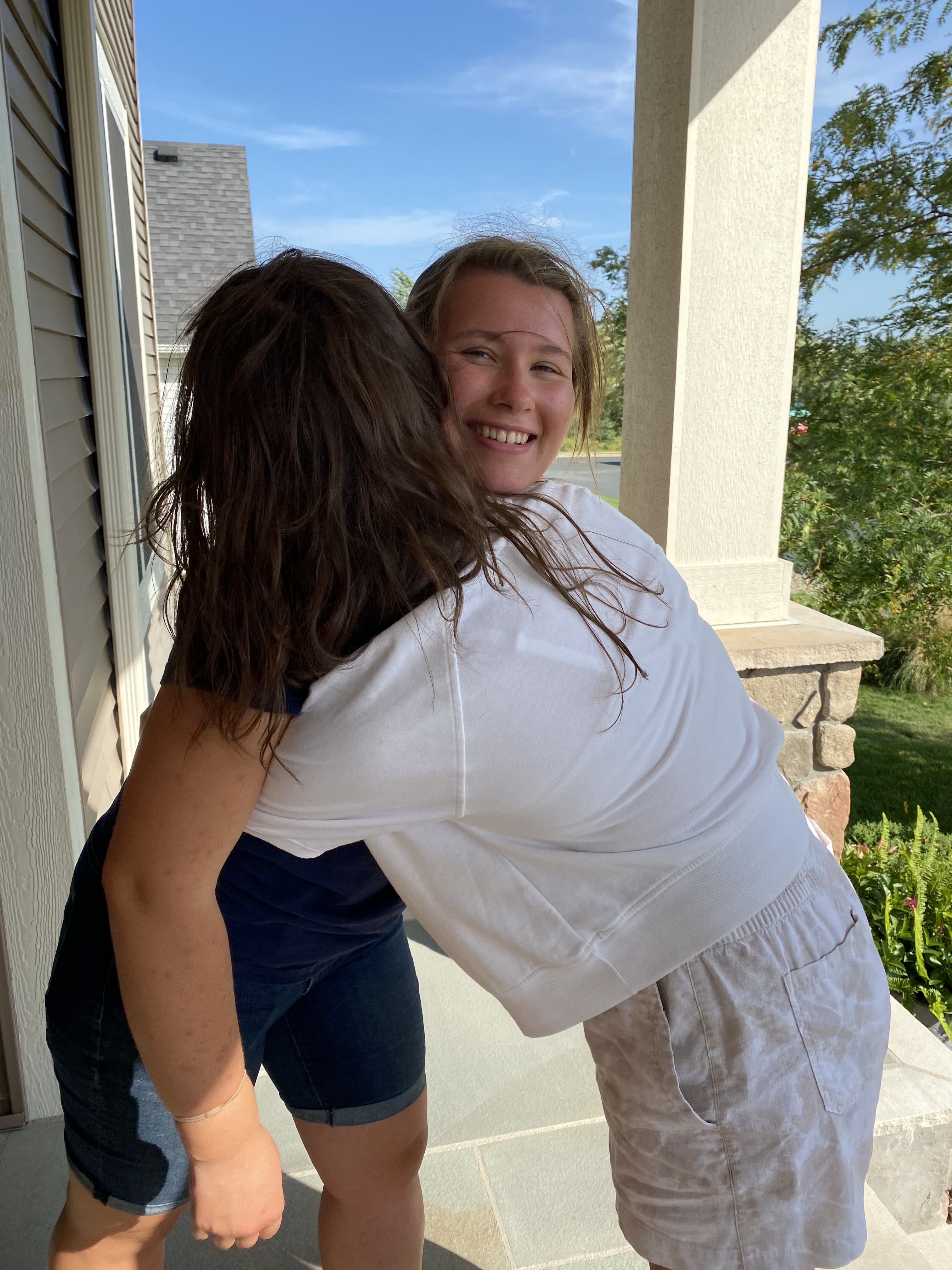 Såväl husdjur som syskon fick stora kramar innan det var dags ( här vägrade Lillasyster släppa taget om syrran!)
