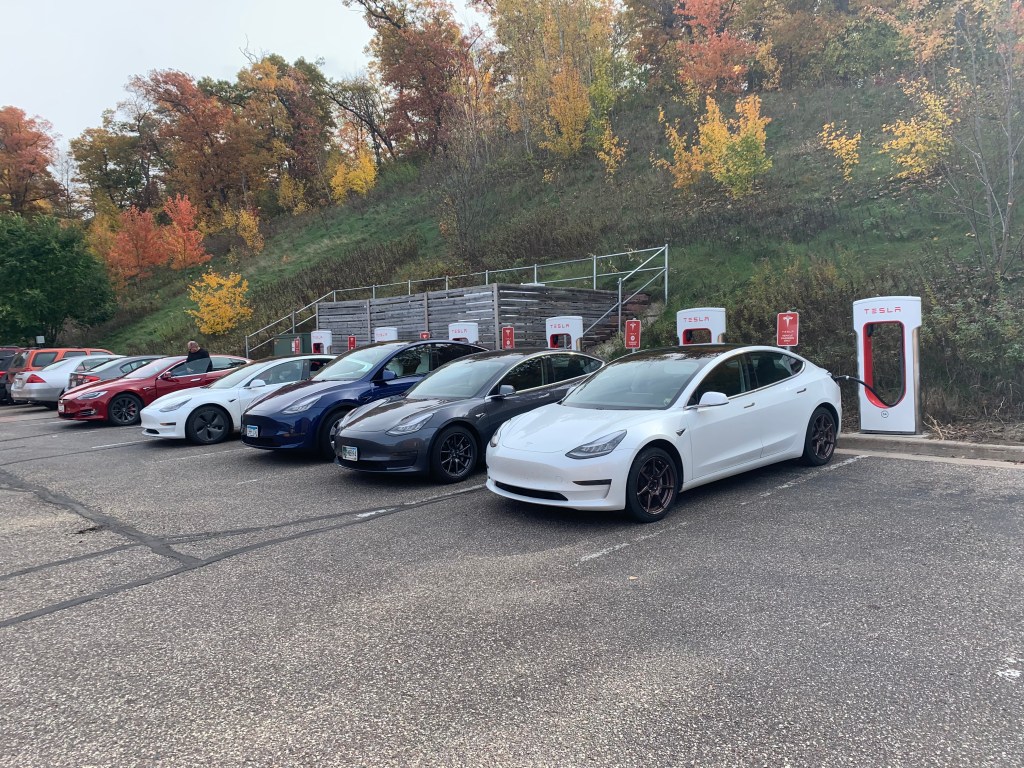 Det visade sig att det gick alldeles utmärkt! Kör man elbil måste man vara beredd på lite långsammare resa. Helt enkelt för att man inte bara kan köra in vid första, bästa bensinstation och tanka, utan för att man måste söka reda på laddare på kartan och planera resan därefter. Bra planerat är det naturligtvis eftersom rätt många kör Tesla nuförtiden och laddare finns utplacerade på parkeringar vid restauranger och anda ställen.
