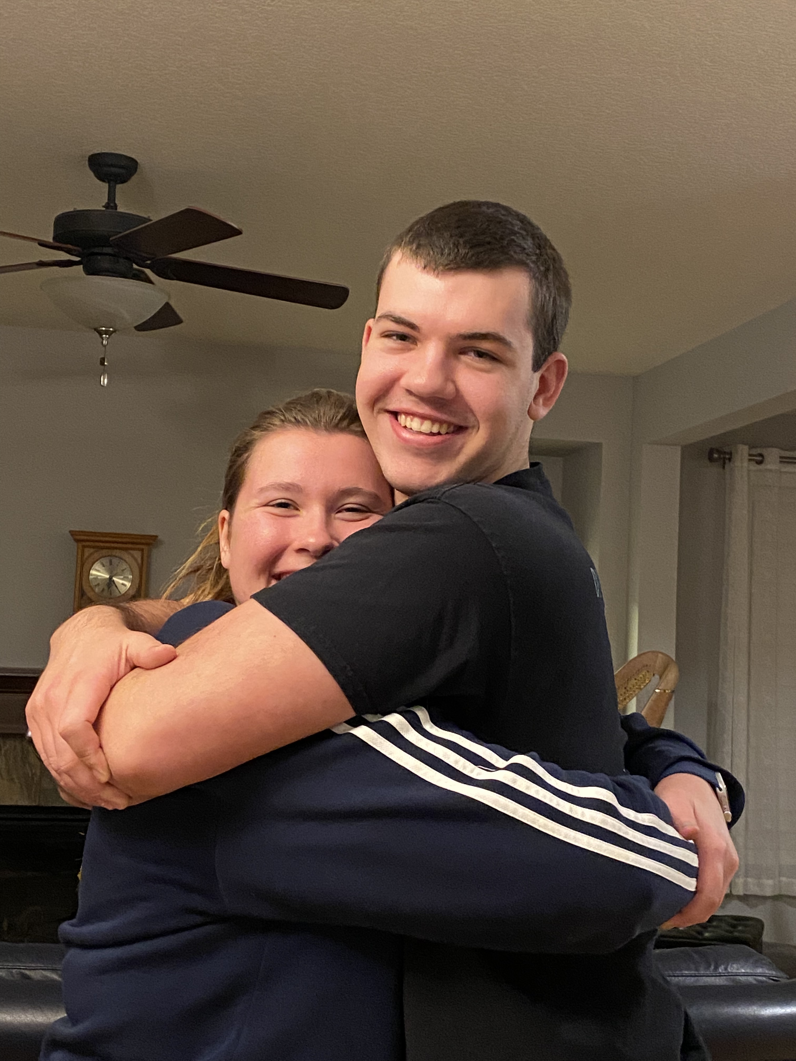 Ngn timme senare kom Sonen hem. Inte från gymnasiet, utan han också från Wisconsin. Han hade åkt just över Minnesotas gräns till universitet där Flickvännen går och hämtade hem henne. Fast på den här bilden kramar han om StoraSyster. Som nu är märkbart kortare än Lillabror, som åter skjutit i längden en aning denna höst.