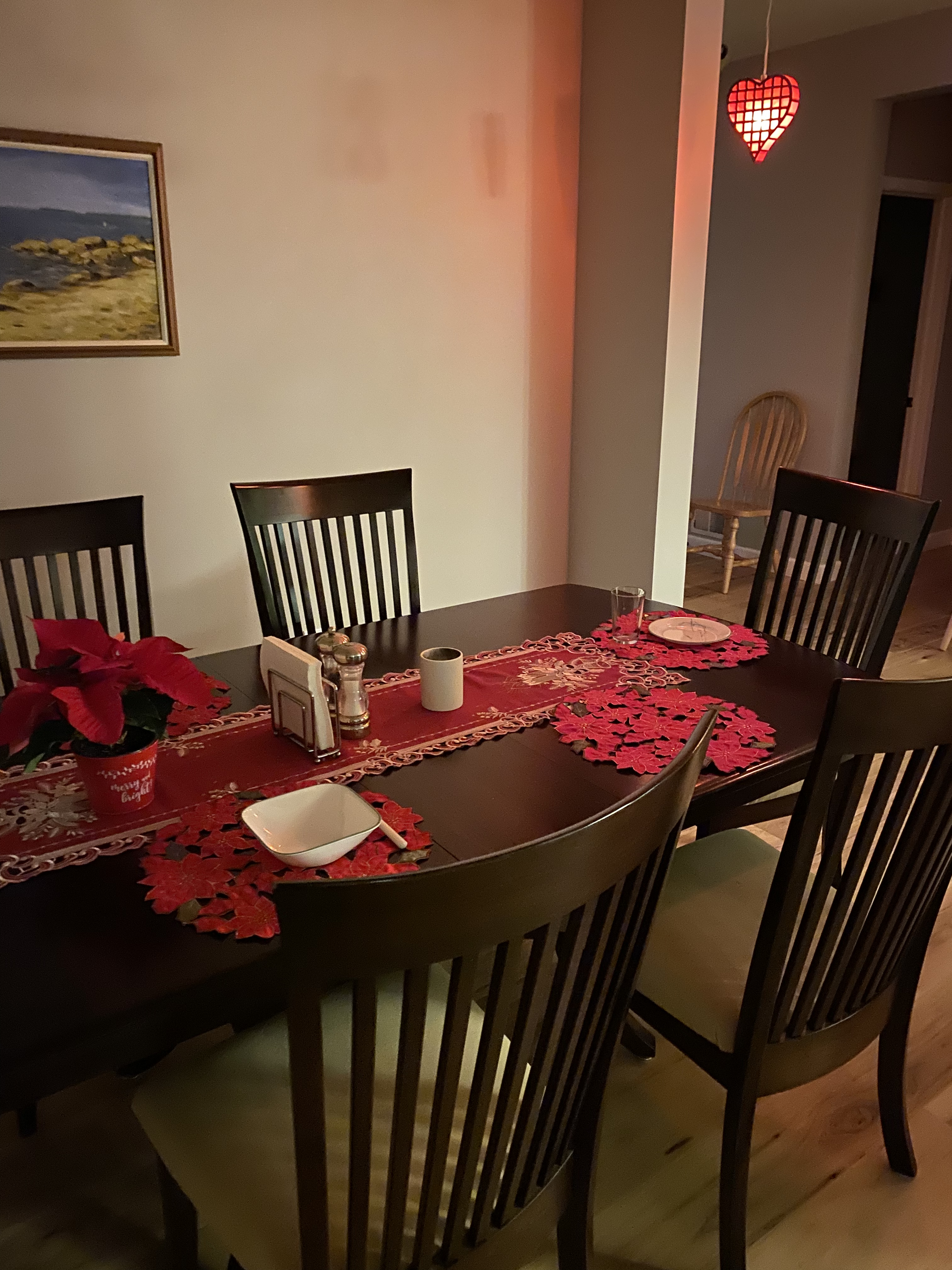 Jaha, tänker ni kanske? Skall julmaten månne intagas på picknick filt på golvet kanske? Även om detta utan tvekan skulle vara kul och äventyrligt, har vi ju två bord till! Ett på verandan, men med minusgrader ute, lämpar sig verandan inte särklit bra att intaga måltider på just nu.